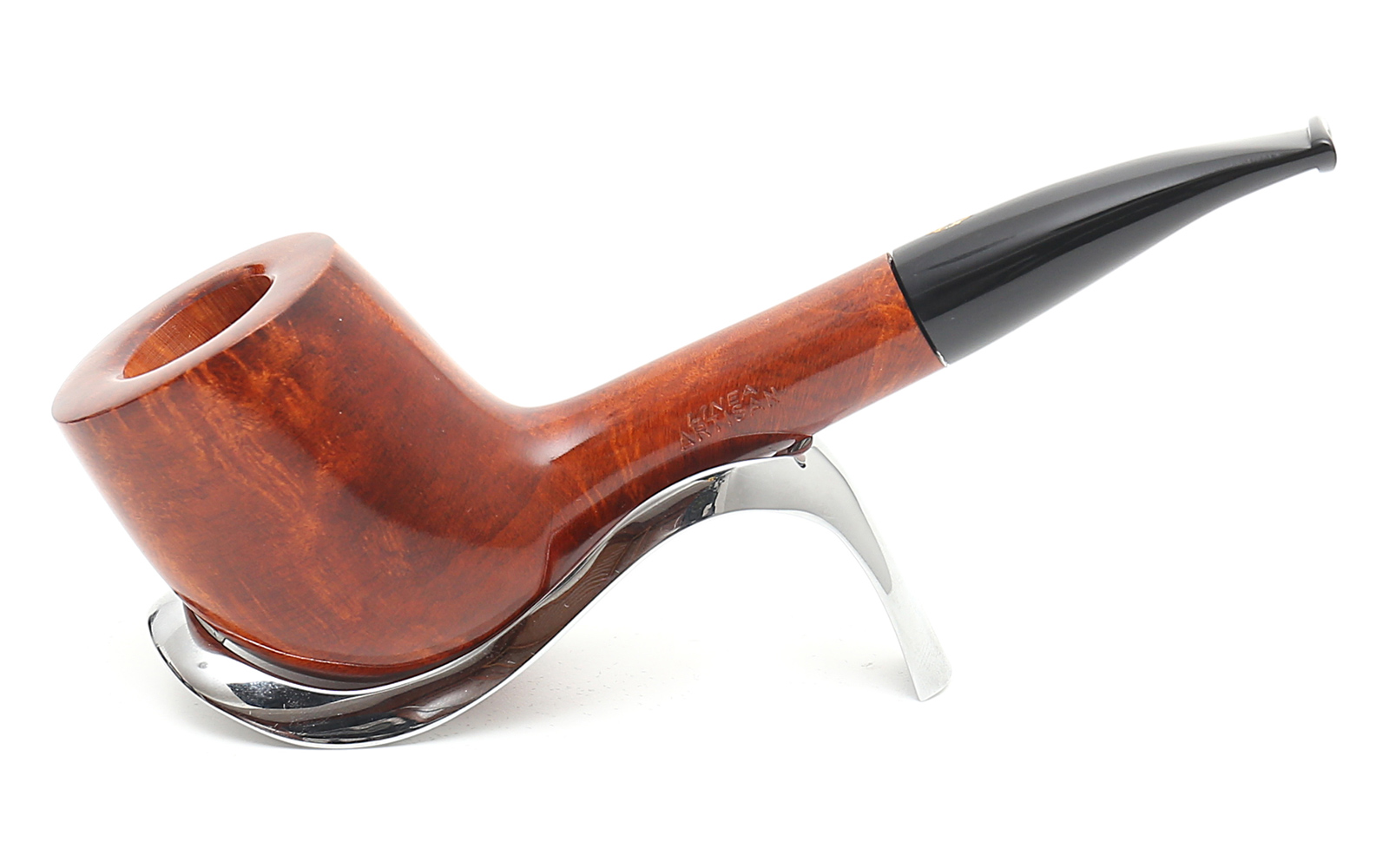 Handgearbeitete einzigartige Pfeife aus der Artisan-Serie mit glatter brauner Oberfläche. Schwarzer Acrylstiel mit einem Lochdurchmesser von 6mm.