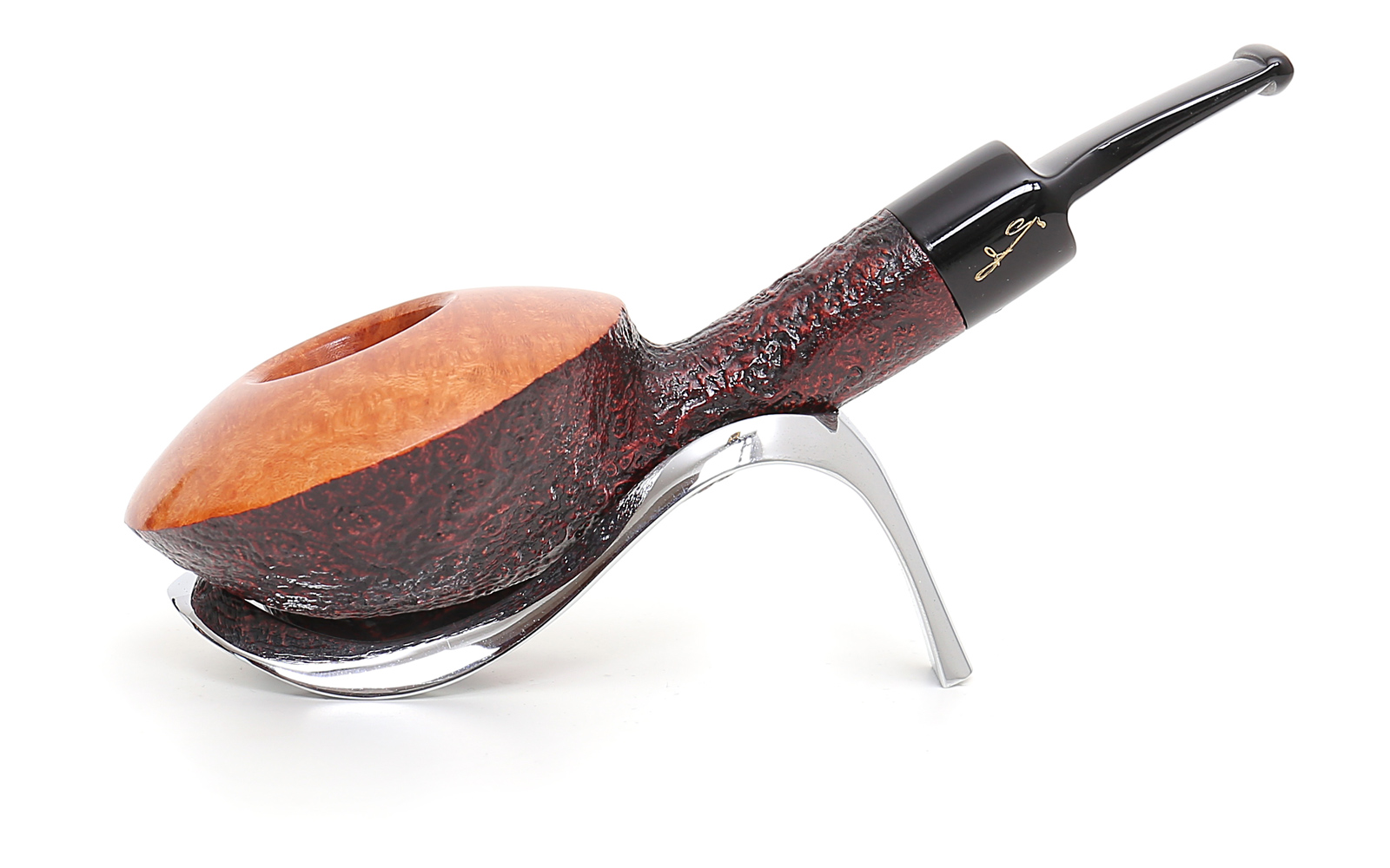 Die Autograph Free Style Serie besteht aus Pfeifen mit einem begehrten Design, das sich von den traditionellen Formen unterscheidet. Sie haben die gleichen Eigenschaften wie Autographs, jedoch mit etwas moderneren und besonderen Formen. Die Pfeife wird komplett von Hand geschnitzt und dabei nur die besten Bruyère-Blöcke verwendet. Diese elegante Autograph Free Style mit einer wunderschönen Maserung hat zwei verschiedene Arten von Oberflächenbearbeitung, die meisterhaft alternieren und eine wunderbar gestaltete Pfeife schaffen. Achille Savinellis Signatur, die in den schwarzen Acrylstiel graviert ist, bescheinigt die hervorragende Qualität dieser Pfeife. Bohrungsdurchmesser 6mm.