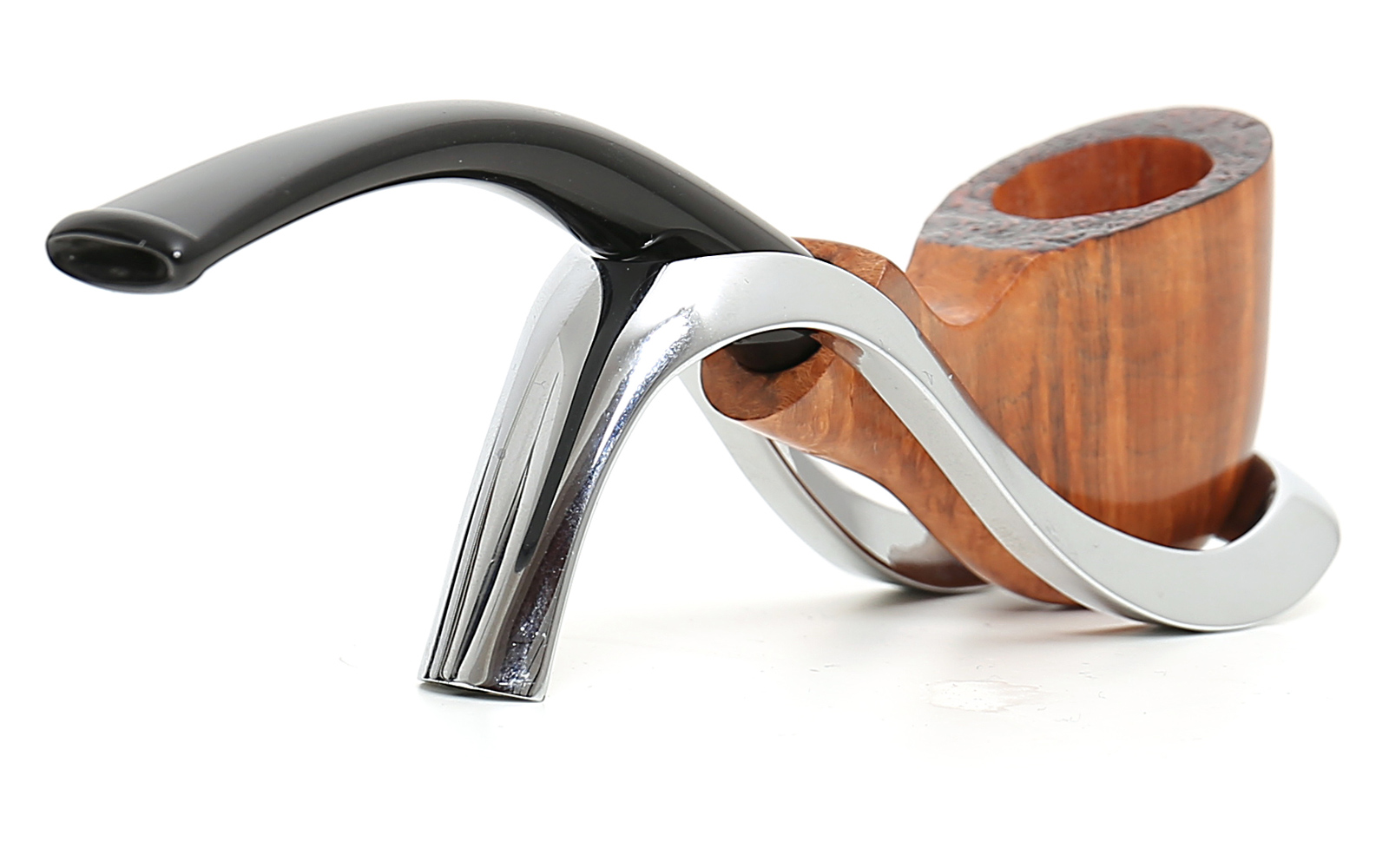 Die Autograph sind im Allgemeinen große Pfeifen. Mit der Mignon Linie möchte Savinelli die besondere 100%ige manuelle Verarbeitung von Freehands sogar auf kleine Pfeifen übertragen und dabei die ausgezeichneten Qualitätsstandards der normalen Autograph beibehalten. Aufgrund der geringen Größe des Pfeifenkopfs sind alle Pfeifen der Mignon-Serie nicht für jedes Filtersystem geeignet. Der Lochdurchmesser beträgt 3mm. Diese Pfeife hat eine gebogene Form. Der Rand der Brennkammer ist schwarz sandgestrahlt, während der Rest der Oberfläche eine glatte natürliche Oberfläche aufweist. Schwarzer Acrylsteg.