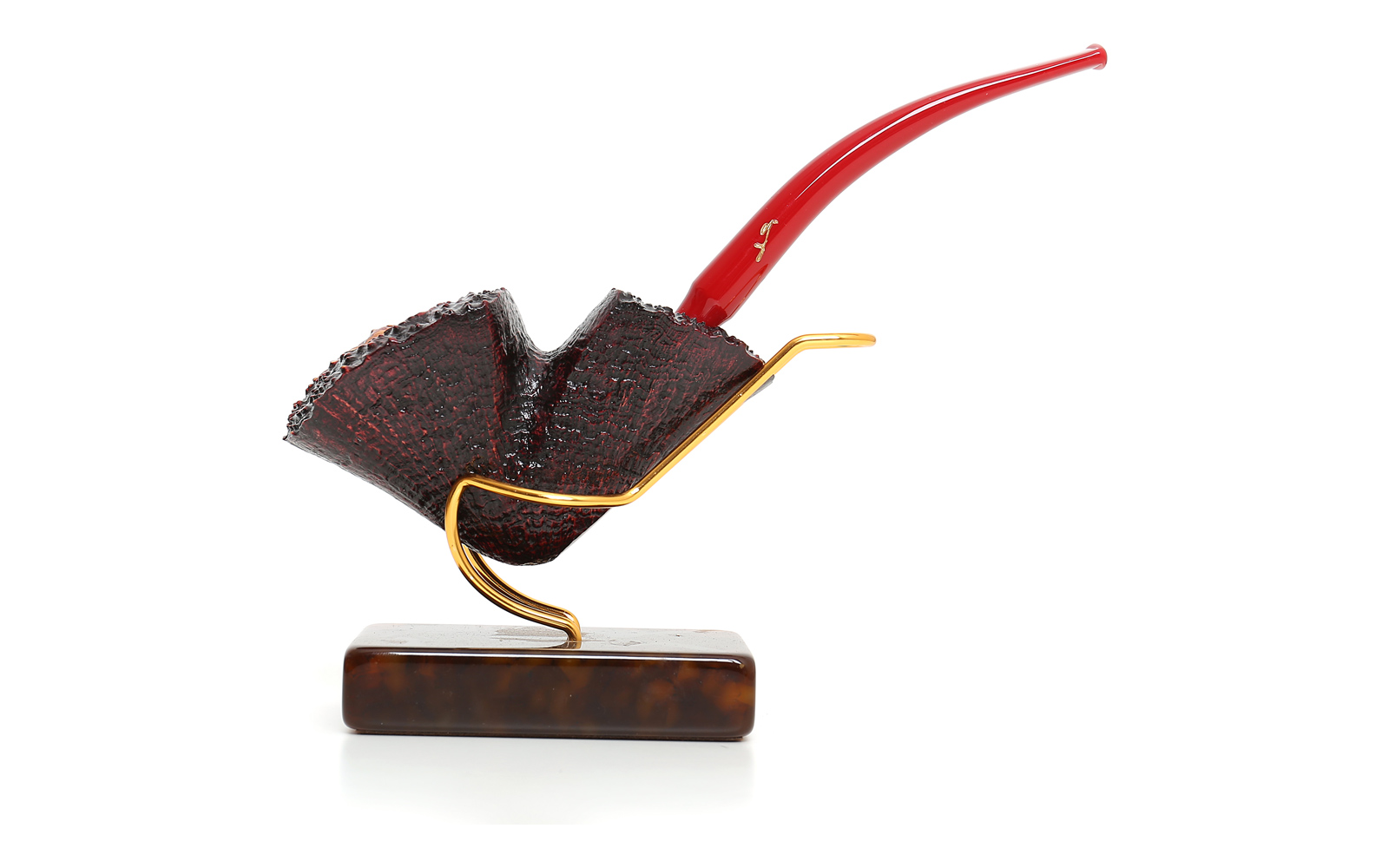 Die sehr strengen Qualitätsstandards, denen Autograph-Pfeifen folgen müssen, beschränken die Produktion auf nur wenige Stücke pro Jahr. Völlig von Hand geschnitzt, repräsentieren diese Pfeifen das Beste, was die Handwerker von Savinelli zu bieten haben. Autograph-Pfeifen werden je nach Bruyère-Qualität in mehrere verschiedene Gruppen eingeteilt, die die renommiertesten Pfeifen identifizieren. Die angesehensten Gruppen sind 000, 00 und 0. Andere Gruppen in absteigender Reihenfolge sind 8, 6, 5, 4, 3. Dann gibt es noch Autograph-Pfeifen, die teilweise oder vollständig sandgestrahlt sind. Hier schlagen wir eine Autograph sandgestrahlt vor. Diese Pfeife hat eine gebogene Form und trägt einen Acrylstiel in Rot mit der klassischen Savinelli-Signatur. Lochdurchmesser 6mm.
