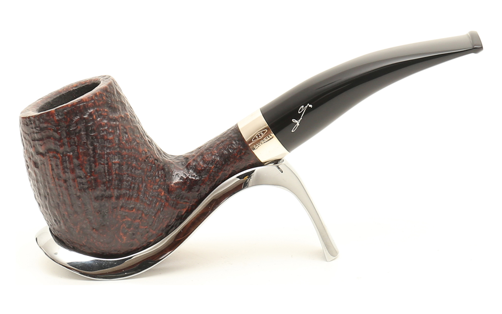 Die sehr strengen Qualitätsstandards, denen Autograph-Pfeifen folgen müssen, beschränken die Produktion auf nur wenige Stücke pro Jahr. Diese komplett von Hand geschnitzten Pfeifen repräsentieren das Beste, was die Handwerker von Savinelli zu bieten haben. Autograph-Pfeifen werden je nach Bruyère-Qualität in mehrere verschiedene Gruppen eingeteilt, die die prestigeträchtigsten Pfeifen identifizieren. Die angesehensten Gruppen sind 000, 00 und 0. Andere Gruppen in absteigender Reihenfolge sind 8, 6, 5, 4, 3. Dann gibt es noch Autograph-Pfeifen, die teilweise oder vollständig sandgestrahlt sind. Hier schlagen wir eine Autograph sandgestrahlt vor. Diese Pfeife hat eine gebogene Form und trägt einen schwarzen Acrylsteg mit der klassischen Savinelli-Signatur. Verziert wird die Pfeife durch ein 925er Silberband. Lochdurchmesser: 6mm.