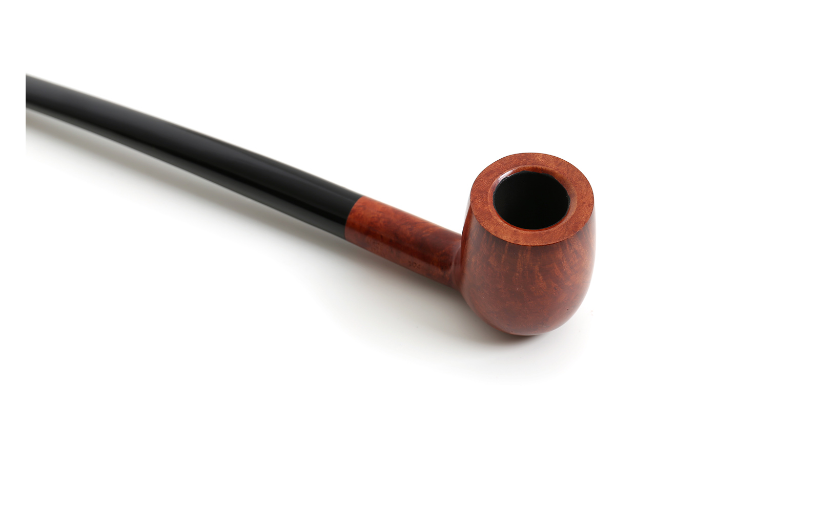 Minutenlanger gerader Billard mit langem konisch zulaufendem Mundstück in brauner glatter Ausführung.