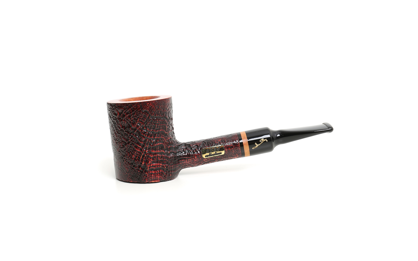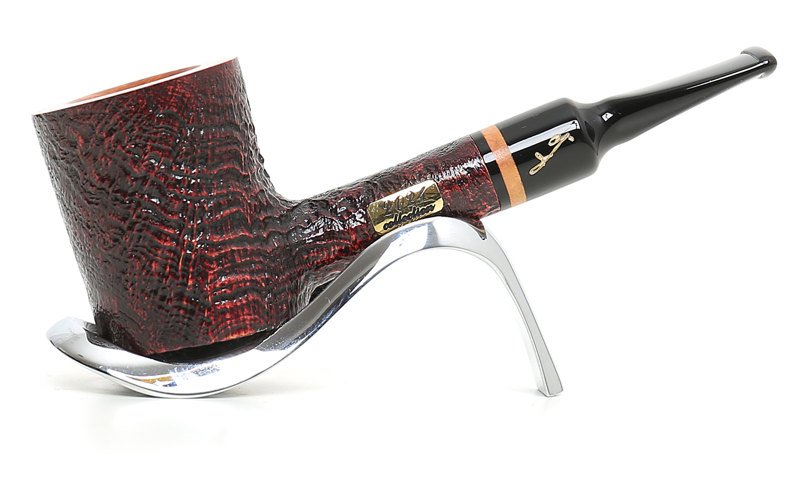 Jedes Jahr seit 1985 setzt Savinelli die Tradition seiner Collection Series fort. Mit einem brandneuen Modell pro Jahr ist diese Serie unter Sammlern sehr bekannt. Im Jahr 2024 präsentieren wir einen halbgebogenen Poker in 4 verschiedenen Ausführungen: glatt natur (nur 49 Stück verfügbar), glatt braun, sandgestrahlt und sandgestrahlt mit glatter Oberseite. Schwarzer Acrylsattel mit eleganter Einfügung in natürlicher Farbe. Eine Messingplatte, die das Jahr angibt, ist am Pfeifenkopf angebracht.