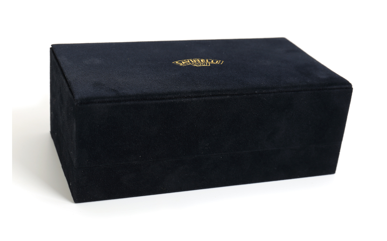Die Fiammata Luisa ist eine Linie von Pfeifen, die dem jüngsten halben Jahrhundert der Savineli-Geschichte gewidmet ist und nach Luisa Bozzetti benannt ist, der Direktorin der Savinelli-Fabrik, die kürzlich nach 50 Jahren im Dienst in den Ruhestand getreten ist. Luisa war erst 15, als sie 1973 bei Savinelli eintrat. Sie erlernte und beherrschte jedes Element der Pfeifenherstellung, bis sie den Titel der Fabrikdirektorin erlangte. Die Luisa Fiammata-Serie ehrt ihre Beiträge mit einer Vielzahl von Formen, von denen einige seit Jahren nicht mehr hergestellt wurden, die in glatten und sandgestrahlten Ausführungen präsentiert werden und alle eine außergewöhnliche Maserung hervorheben, die persönlich von Luisa ausgewählt wurde. Jede Pfeife ist mit einem Vintage-Mundstück aus Vulkanit ausgestattet. Modell 121 KS ist eine halbgebogene Pfeife im Pot-Stil, einer der klassischsten Stile, der von den bekannten Billard-Pfeifen stammt. Die abgeflachte und zylindrische Schale verfügt über eine niedrige Brennkammer mit guter Kapazität. Dieses Modell endet mit einem eleganten Sattelsteg, der den leichten Bogen perfekt aufnimmt. Die abgebildete Pfeife ist die Nummer 3350.