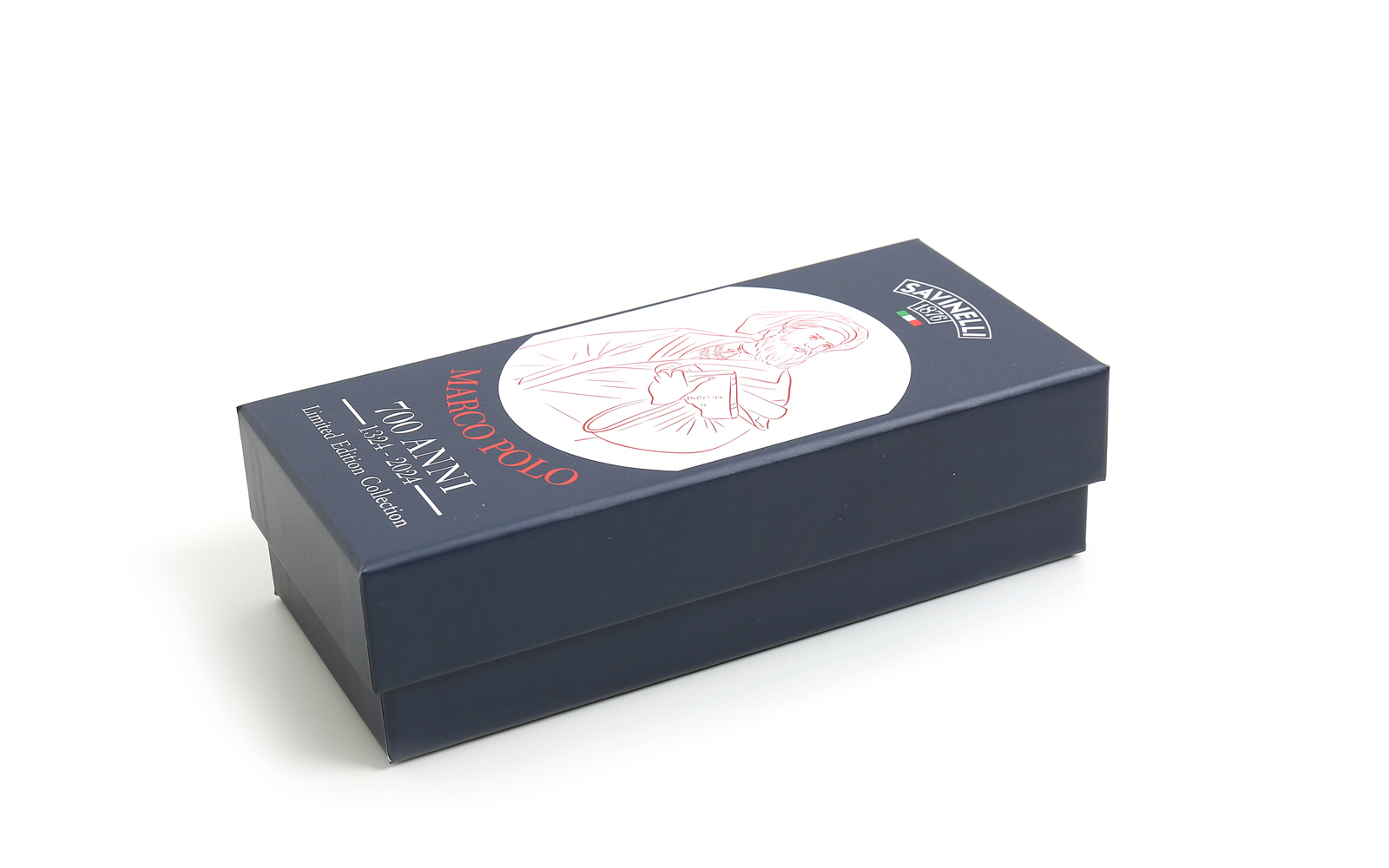 Marco Polo reiste 24 Jahre lang durch den Osten und durchquerte viele Länder auf der Seidenstraße. Er beschrieb diese Erfahrung in einem Buch "il Milione", einem weltweit bekannten geografischen Bericht. Er war ein Mann, dessen Taten eine Brücke zum Osten schlugen und dessen Einfallsreichtum ihn zu einem Symbol Venedigs in der Welt machte. Mit dieser limitierten Edition möchten wir dem berühmten Entdecker huldigen. Es handelt sich um eine Kollektion von nur 700 Stücken, die anlässlich des 700. Todestages von Marco Polo herausgegeben wurde. Das Modell 111 KS ist in rustikalem Schwarz gehalten, hat einen schwarzen Acrylmundstück und ein rotes Band, das an seinen Hut erinnert. Die Pfeife wird in einer speziell gestalteten Box verkauft. Auf den Bildern ist die Nummer 342 zu sehen. Unter diesem Link können Sie den Beitrag von Monsignore Pierfrancesco Fumagalli, einem Mitglied des Vorstands des Italo-Chinesischen Instituts, einsehen. Dort finden Sie eine Zusammenfassung, wie sich Marco Polos Reisen und Lebensgeschichte im Laufe der Jahrhunderte entwickelt haben und vor allem, wie sie uns erreicht haben.
