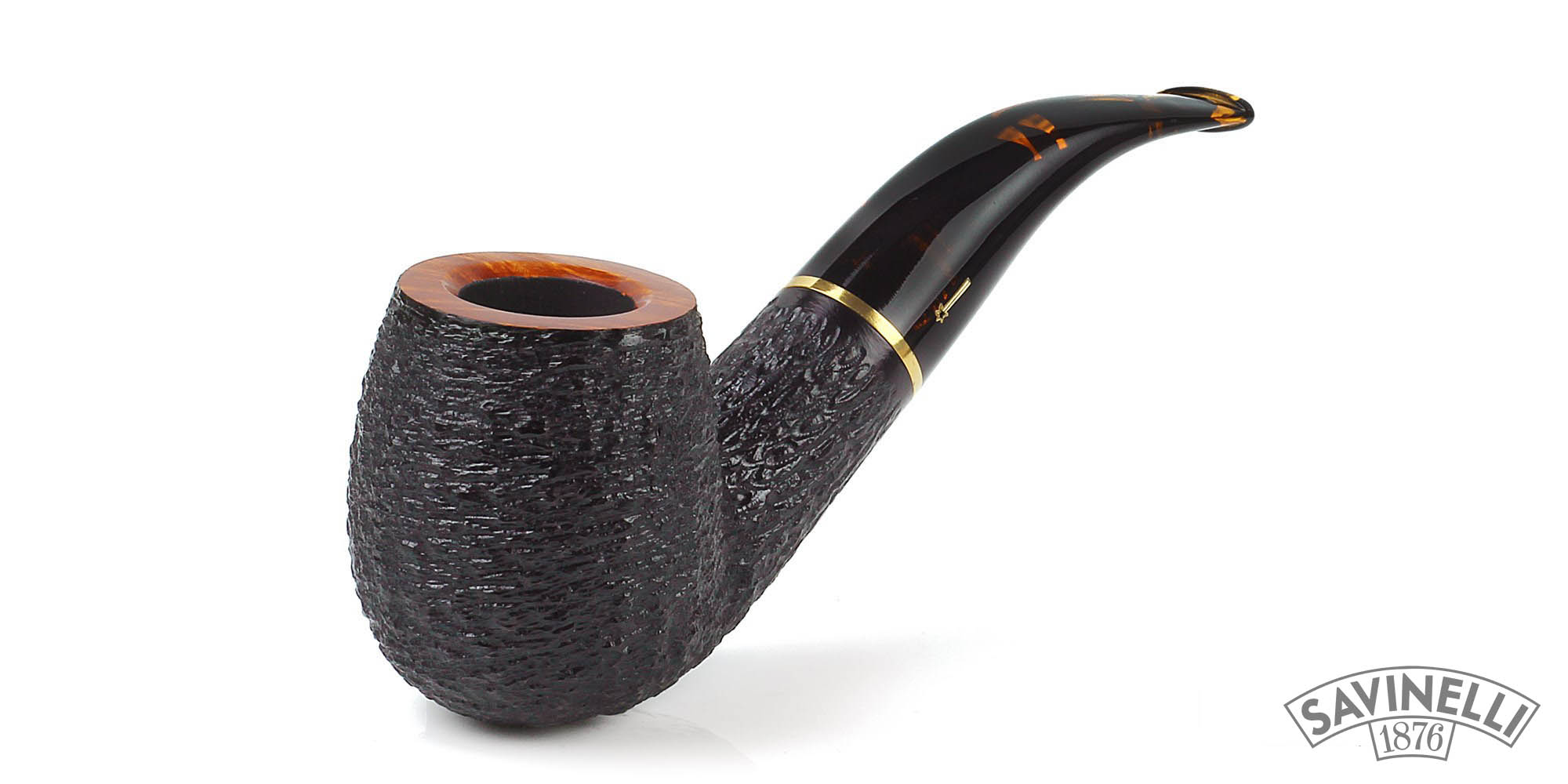 Die Besonderheit dieser Pfeife liegt in ihrem Acrylmundstück, das gestreift wie das Fell eines Tigers ist. Erhältlich in 2 verschiedenen Ausführungen: glattes Hellbraun und rustikales Schwarz. Die rustikale Oberfläche ist sehr dünn und direkt auf der Pfeife gestaltet. Das Modell 616 KS gehört zu den größten Modellen, die Savinelli seinen Kunden anbietet. Die große und tief ausgehöhlte zylindrische Schale wird optisch durch einen dickwandigen und robusten zylindrischen Pfeifenkopf ausgeglichen. Ein wirklich maskuliner Stil.