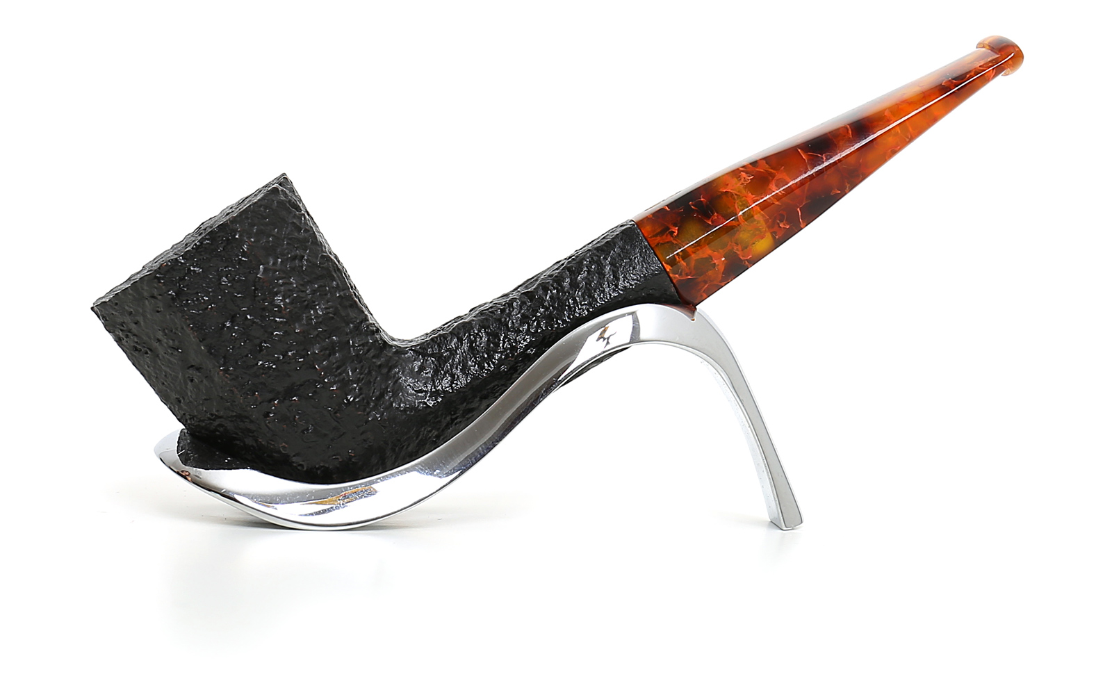 Limitierte Serie von nur 600 nummerierten Stücken. Die Ottagono Due Serie hat eine schwarze sandgestrahlte Oberfläche und ein Craquel-Acrylstiel in Variationen von Orange und Schwarz. Die Form ist sehr speziell, da sie eine Schale mit acht Facetten hat, was eine präzise Ausführung impliziert, die unsere Handwerker sehr sorgfältig durchführen, ebenso wie die Verbindung des sechseckigen Stiels mit der gleichen Form des Pfeifenkopfes. Sogar das manuelle Sandstrahlen, das Pfeife für Pfeife durchgeführt wird, ist ein Prozess, der sehr hohe Aufmerksamkeit erfordert, um die Linien der Pfeife nicht zu verformen und die Maserung des Bruyèreholzes hervorzuheben. Modell 438 ist eine gerade Zulu, die mit 8 Facetten am Pfeifenkopf und 6 am Pfeifenhals gestaltet ist. Die Pfeife auf den Bildern ist die Nummer 3.