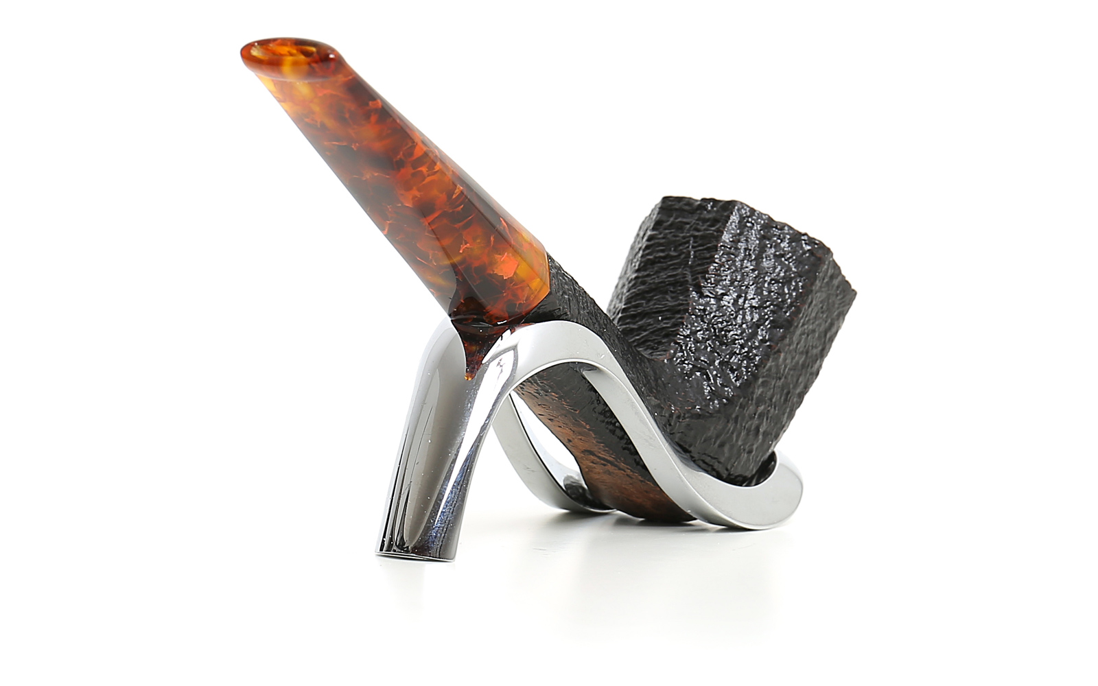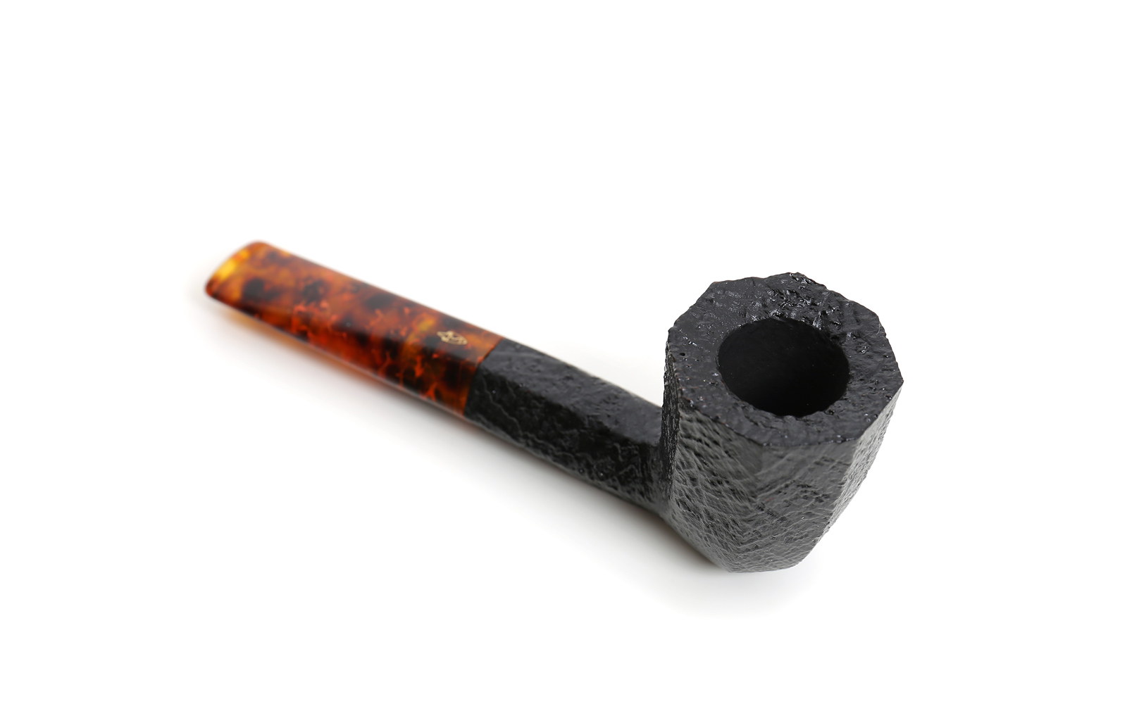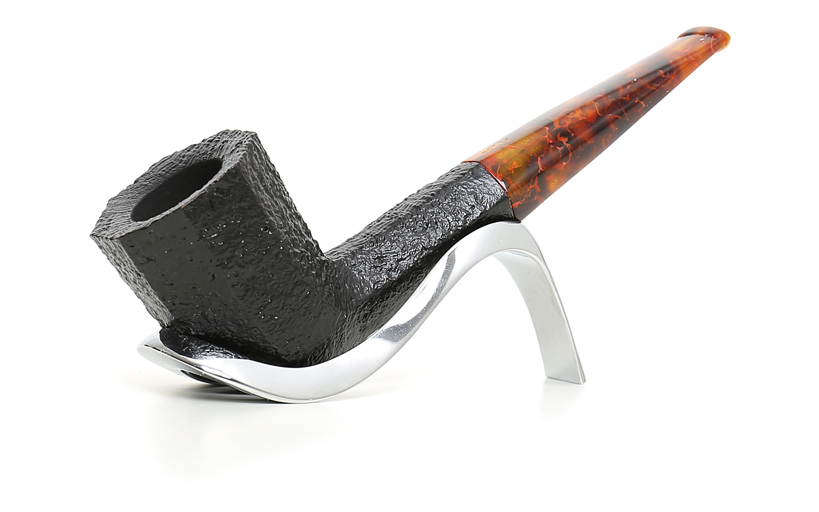 Limitierte Serie von nur 600 nummerierten Stücken. Die Ottagono Due Serie hat eine schwarze sandgestrahlte Oberfläche und ein Craquelé-Acrylmundstück in den Varianten Orange und Schwarz. Die Form ist sehr besonders, da sie eine Schale mit acht Facetten hat, was eine präzise Ausführung erfordert, die unsere Handwerker sehr sorgfältig durchführen, ebenso wie die Verbindung des sechseckigen Mundstücks mit dem gleichen Form des Pfeifenkopfes. Selbst das Sandstrahlen, das manuell Pfeife für Pfeife durchgeführt wird, ist ein Prozess, der höchste Aufmerksamkeit erfordert, um die Linien der Pfeife nicht zu verformen und die Maserung des Bruyèreholzes hervorzuheben. Modell 438 ist eine gerade Zulu, die mit 8 Facetten am Kopf und 6 am Pfeifenkopf entworfen wurde. Die Pfeife auf den Bildern ist die Nummer 300.