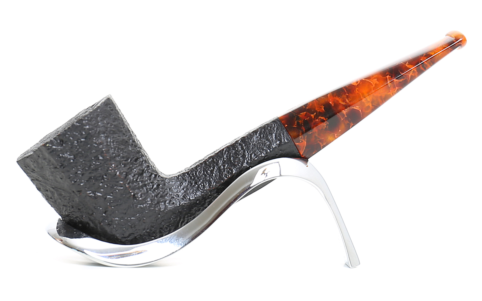 Limitierte Serie von nur 600 nummerierten Stücken. Die Ottagono Due Serie hat eine schwarze sandgestrahlte Oberfläche und ein Craquel-Acrylmundstück in den Varianten Orange und Schwarz. Die Form ist sehr speziell, da sie eine Schale mit acht Facetten hat, was eine Präzision der Ausführung impliziert, die unsere Handwerker sehr sorgfältig durchführen, ebenso wie die Verbindung des sechseckigen Mundstücks mit dem gleichen Form der Röhre. Selbst das manuelle Sandstrahlen, das Röhre für Röhre durchgeführt wird, ist ein Prozess, der sehr hohe Aufmerksamkeit erfordert, um die Linien der Röhre nicht zu verformen und die Maserung des Bruyèreholzes hervorzuheben. Modell 438 ist ein gerader Zulu, der mit 8 Facetten an der Schale und 6 an der Röhre gestaltet ist. Die Röhre auf den Bildern ist die Nummer 4.
