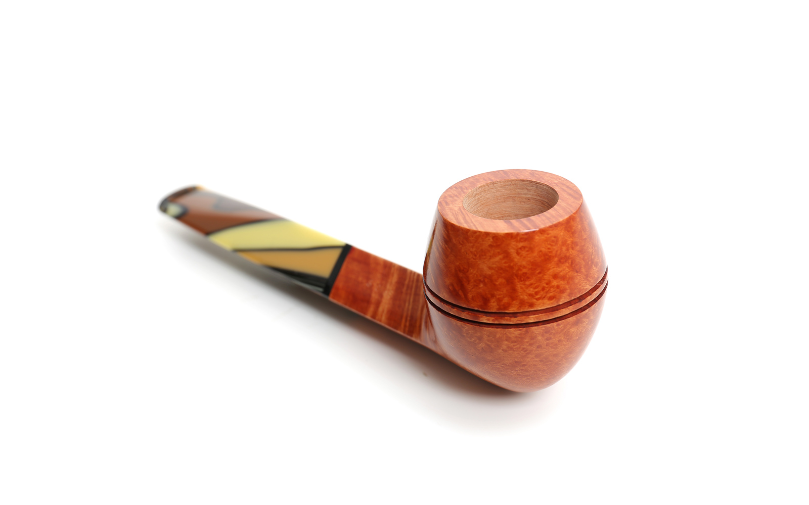 Ein Acrylmundstück mit "gespalteten" Erdtönen macht diese naturfarbene Pfeife im glatten Finish zu einem sehr warmen und interessanten Objekt, ebenso wie in ihrer rustizierten schwarzen Version. Es gibt 6 Modelle zur Auswahl. Das Modell 510 KS ist ein gerader Bulldog mit der typischen diamantförmigen Schale und einem quadratischen Schaft. Ein sehr berühmter Stil mit vielen Liebhabern auf der ganzen Welt.