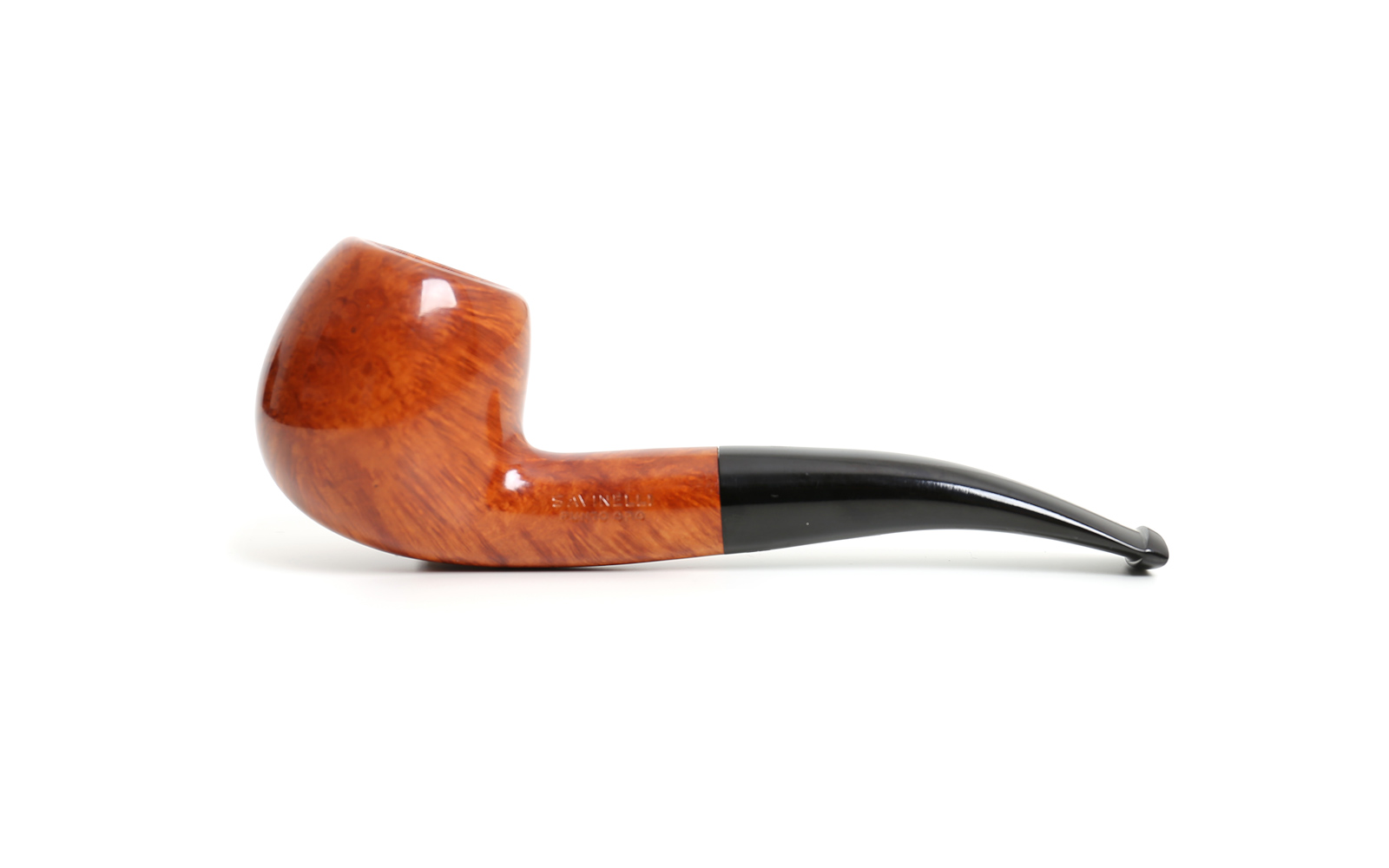 Die Punto oro Super Serie wurde in den 1980er Jahren mit Flammen- und Vogelaugenmaserung geboren. Der moderne matte Naturfinish macht sie zu einer Super Pfeife. Die Punto Oro ist ein Savinelli Klassiker. Nach einer langen Reifephase wird die Bruyère sorgfältig bearbeitet, um ihre überlegene Qualität zu offenbaren. Das Modell 626 verkörpert vollständig die Eleganz des Apfelstils. Seine weichen Linien und Abmessungen machen es ästhetisch zu einer gut proportionierten Pfeife. Schwarzer Vulkanitmundstück.