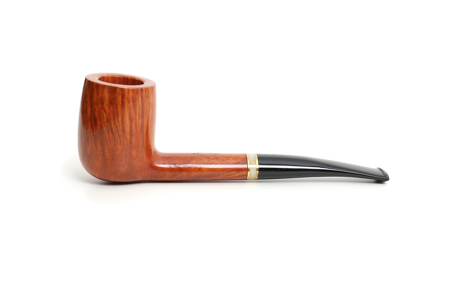 Pfeife aus den 90er Jahren mit glatter natürlicher Oberfläche und Acrylband, das zwischen 2 Messingbändern positioniert ist. Das Modell 811 KS gehört zum Lumberman-Stil. Eine seiner besten Eigenschaften ist die Fähigkeit, dem Raucher einen sehr frischen Rauch zu bieten, dank der Länge seines dünnen und eleganten elliptischen Pfeifenkopfs.